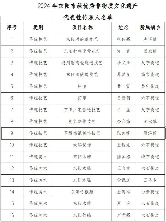 祝贺公司总经理入选2024年东阳市级优秀非物质文化遗产代表性传承人